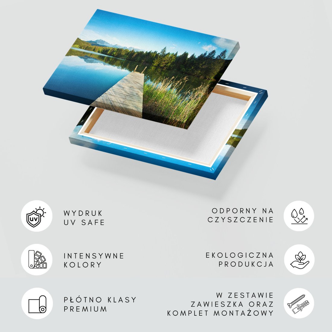 Obraz na płótnie z motywem jezioro, góry, lasy to kwintesencja estetyki i trwałości. Dzięki łatwemu montażowi i uniwersalnemu wzornictwu, czyni go idealnym wyborem zarówno do codziennego użytku, jak i na wyrafinowany prezent.