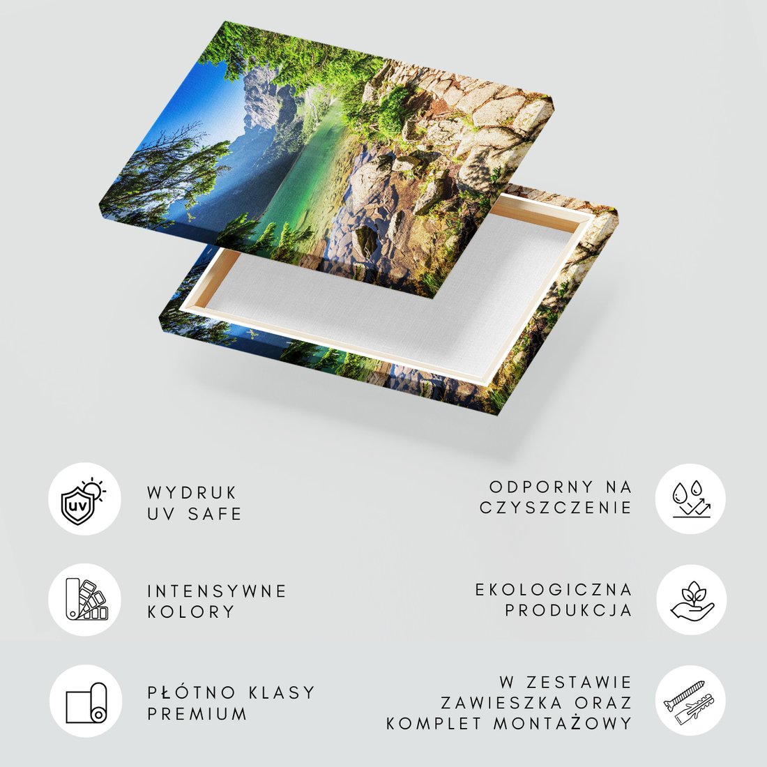 Obraz na płótnie z motywem jezioro, góry, lasy to kwintesencja estetyki i trwałości. Dzięki łatwemu montażowi i uniwersalnemu wzornictwu, czyni go idealnym wyborem zarówno do codziennego użytku, jak i na wyrafinowany prezent.