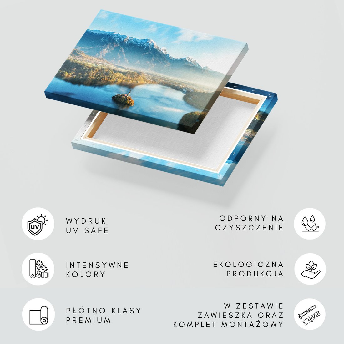 Obraz na płótnie z motywem jezioro, góry, wyspa to kwintesencja estetyki i trwałości. Dzięki łatwemu montażowi i uniwersalnemu wzornictwu, czyni go idealnym wyborem zarówno do codziennego użytku, jak i na wyrafinowany prezent.