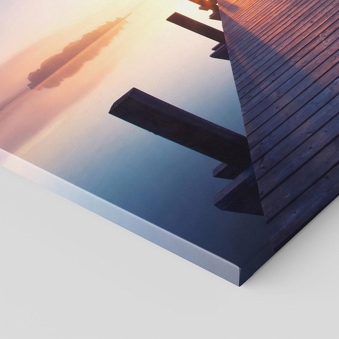 Obraz na płótnie z motywem jezioro, most, zachód słońca to kwintesencja estetyki i trwałości. Dzięki łatwemu montażowi i uniwersalnemu wzornictwu, czyni go idealnym wyborem zarówno do codziennego użytku, jak i na wyrafinowany prezent.
