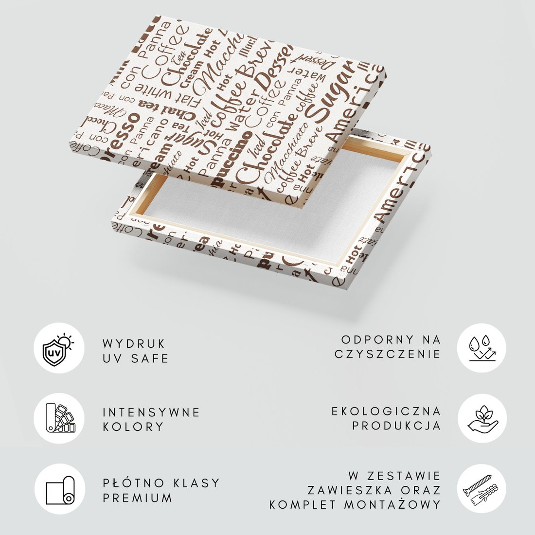 Obraz na płótnie z motywem kawa, napoje, tło to kwintesencja estetyki i trwałości. Dzięki łatwemu montażowi i uniwersalnemu wzornictwu, czyni go idealnym wyborem zarówno do codziennego użytku, jak i na wyrafinowany prezent.