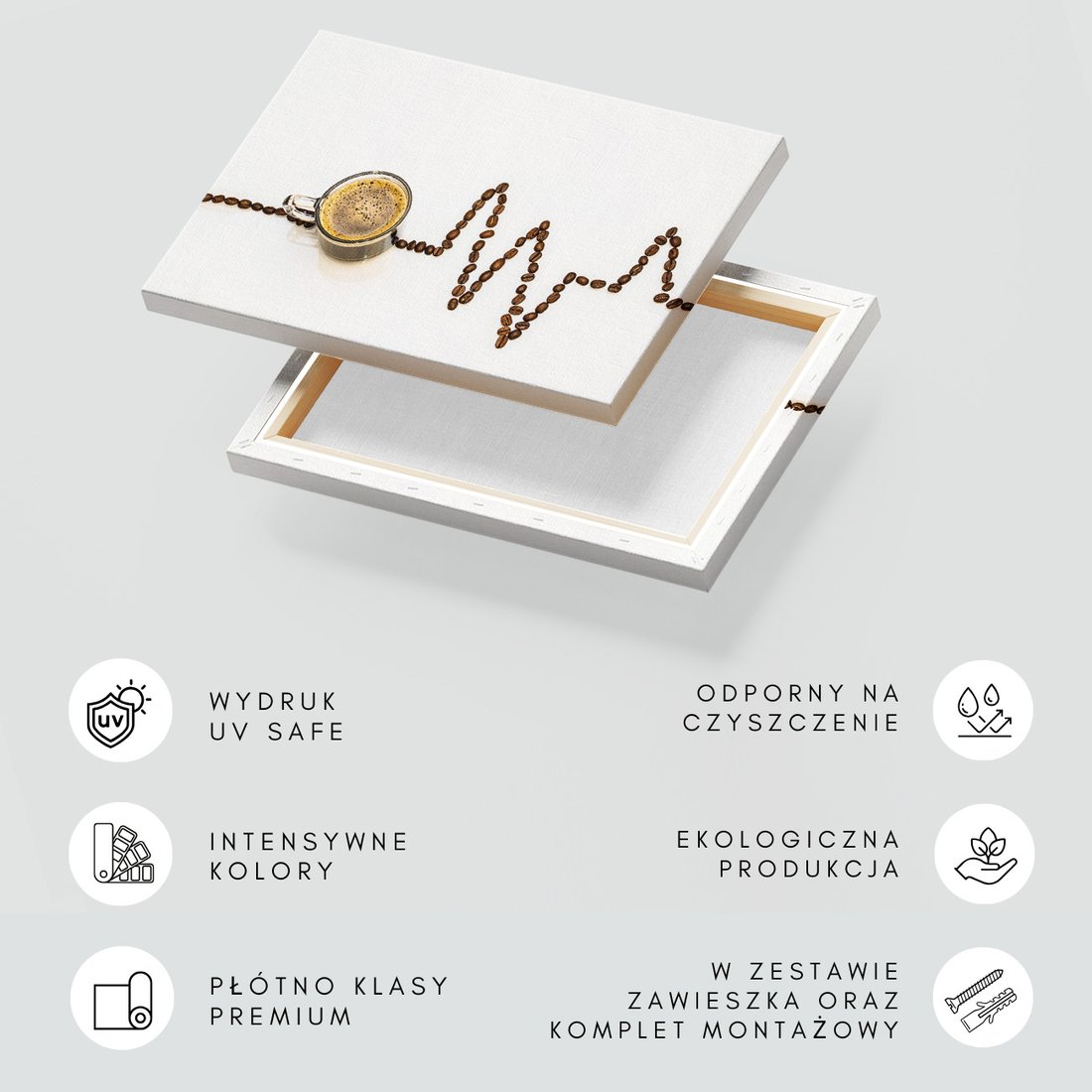 Obraz na płótnie z motywem kawa, ziarna, napój to kwintesencja estetyki i trwałości. Dzięki łatwemu montażowi i uniwersalnemu wzornictwu, czyni go idealnym wyborem zarówno do codziennego użytku, jak i na wyrafinowany prezent.