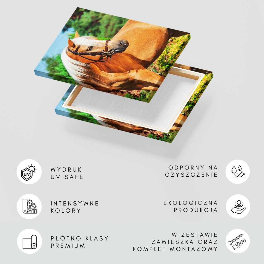 Obraz na płótnie z motywem koń, zwierzę, natura to kwintesencja estetyki i trwałości. Dzięki łatwemu montażowi i uniwersalnemu wzornictwu, czyni go idealnym wyborem zarówno do codziennego użytku, jak i na wyrafinowany prezent.