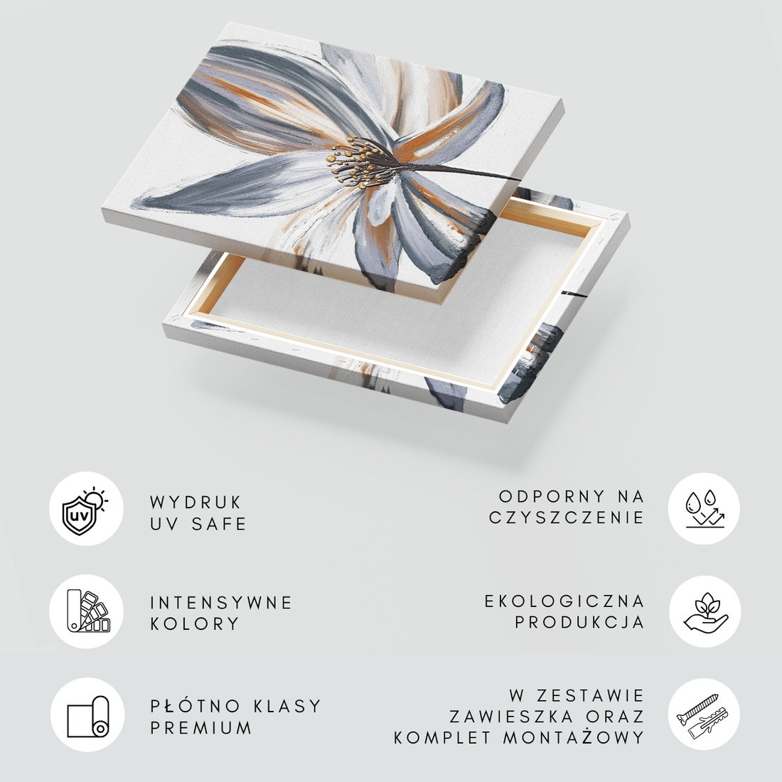 Obraz na płótnie z motywem kwiat, abstrakcja, płatki to kwintesencja estetyki i trwałości. Dzięki łatwemu montażowi i uniwersalnemu wzornictwu, czyni go idealnym wyborem zarówno do codziennego użytku, jak i na wyrafinowany prezent.