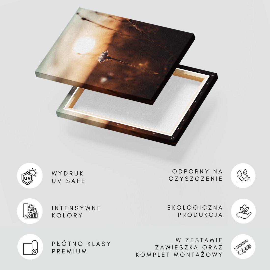 Obraz na płótnie z motywem kwiat, zachód słońca, natura to kwintesencja estetyki i trwałości. Dzięki łatwemu montażowi i uniwersalnemu wzornictwu, czyni go idealnym wyborem zarówno do codziennego użytku, jak i na wyrafinowany prezent.