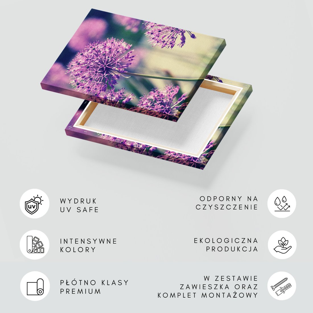 Obraz na płótnie z motywem kwiaty, fioletowe, zbliżenie to kwintesencja estetyki i trwałości. Dzięki łatwemu montażowi i uniwersalnemu wzornictwu, czyni go idealnym wyborem zarówno do codziennego użytku, jak i na wyrafinowany prezent.