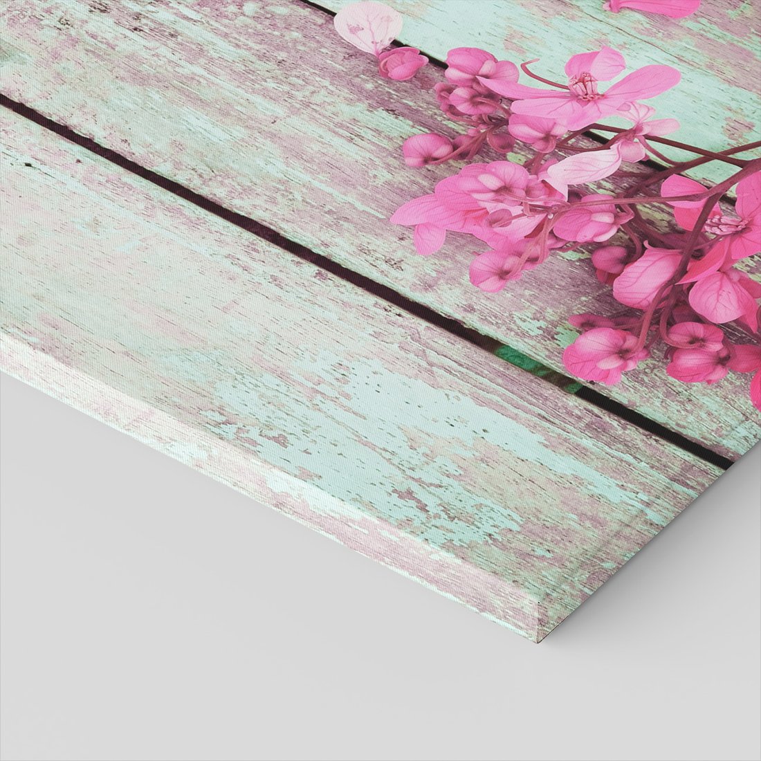 - Obraz na płótnie - kwiaty, różowy, drewno