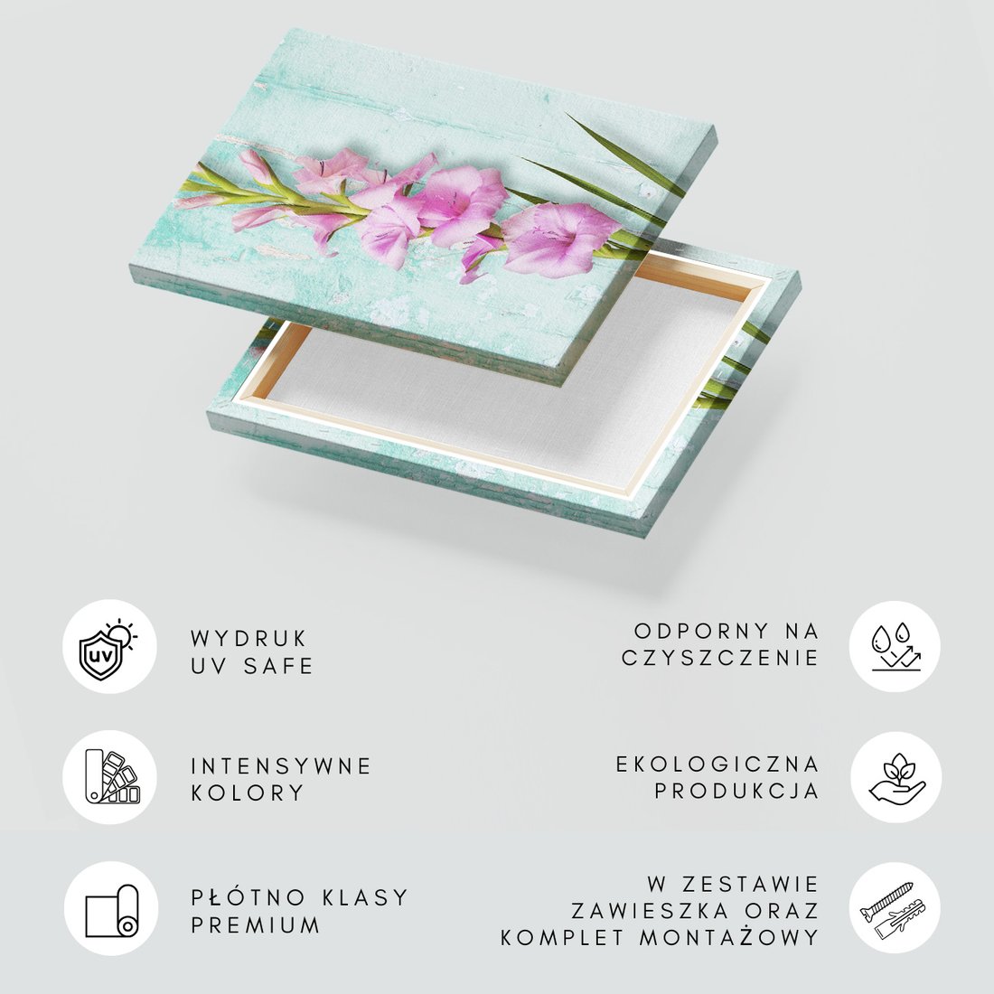 Obraz na płótnie z motywem kwiaty, różowy, gladiole to kwintesencja estetyki i trwałości. Dzięki łatwemu montażowi i uniwersalnemu wzornictwu, czyni go idealnym wyborem zarówno do codziennego użytku, jak i na wyrafinowany prezent.