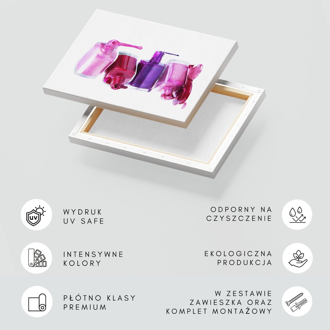 Obraz na płótnie z motywem lakiery, do, paznokci to kwintesencja estetyki i trwałości. Dzięki łatwemu montażowi i uniwersalnemu wzornictwu, czyni go idealnym wyborem zarówno do codziennego użytku, jak i na wyrafinowany prezent.