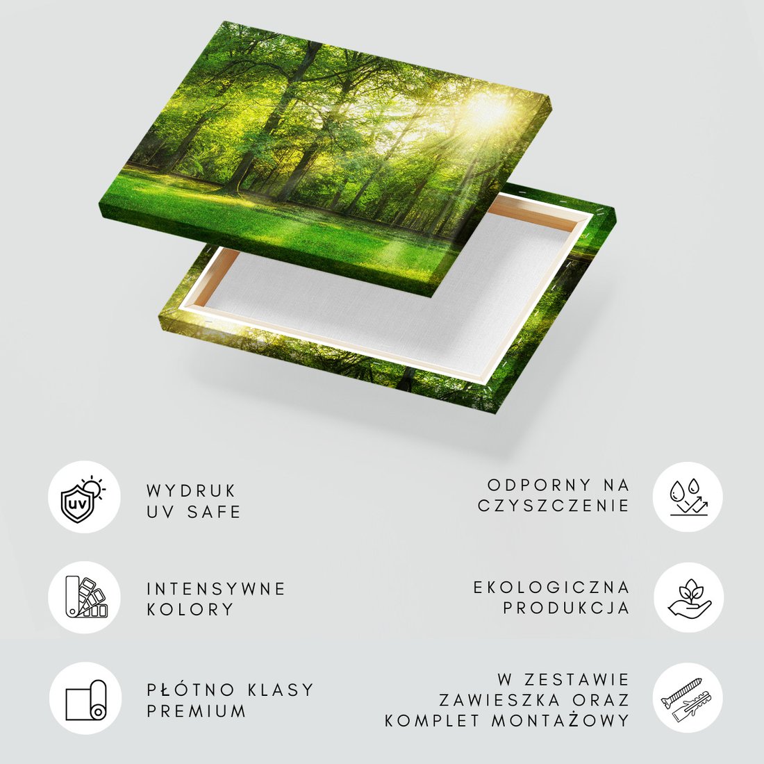 Obraz na płótnie z motywem las, drzewa, natura to kwintesencja estetyki i trwałości. Dzięki łatwemu montażowi i uniwersalnemu wzornictwu, czyni go idealnym wyborem zarówno do codziennego użytku, jak i na wyrafinowany prezent.