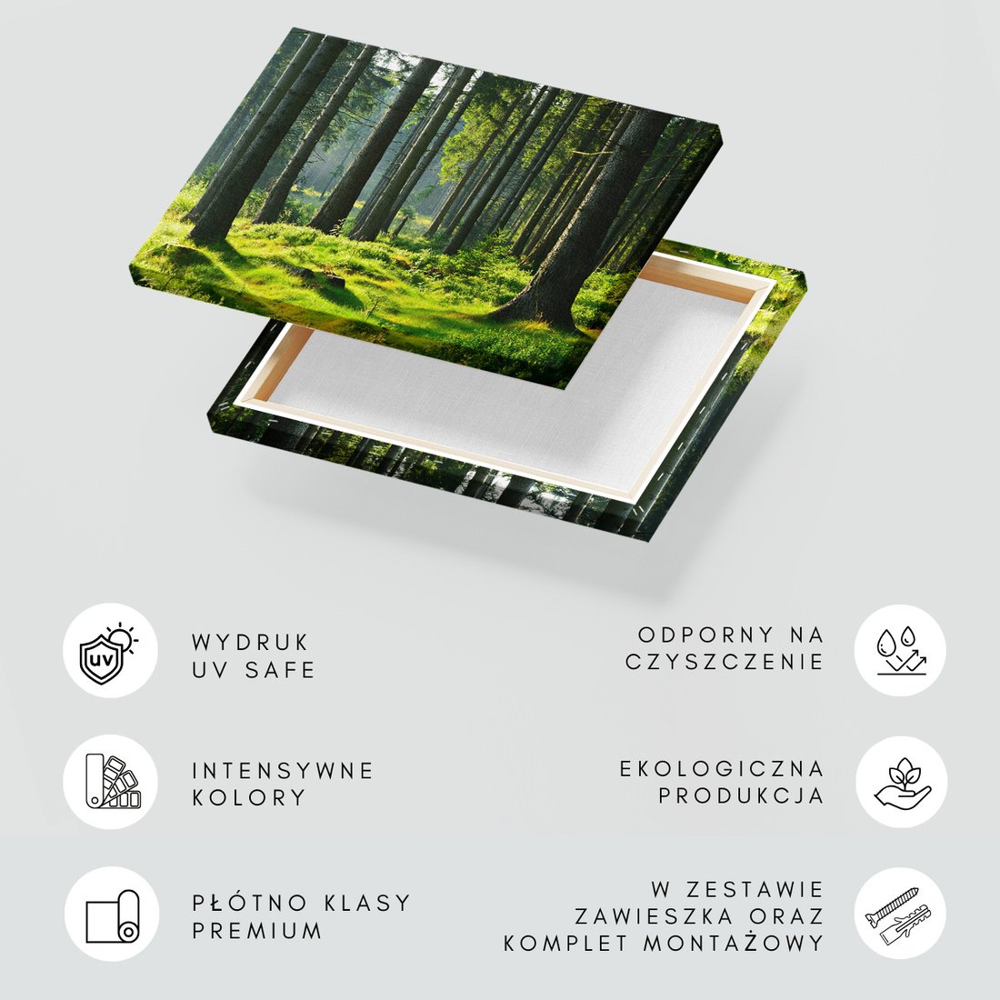 Obraz na płótnie z motywem las, drzewa, natura to kwintesencja estetyki i trwałości. Dzięki łatwemu montażowi i uniwersalnemu wzornictwu, czyni go idealnym wyborem zarówno do codziennego użytku, jak i na wyrafinowany prezent.