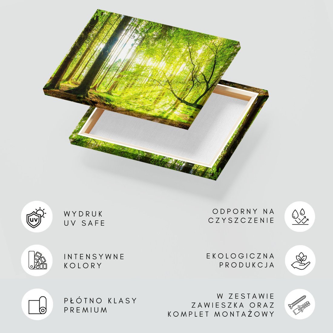 Obraz na płótnie z motywem las, drzewa, przyroda to kwintesencja estetyki i trwałości. Dzięki łatwemu montażowi i uniwersalnemu wzornictwu, czyni go idealnym wyborem zarówno do codziennego użytku, jak i na wyrafinowany prezent.