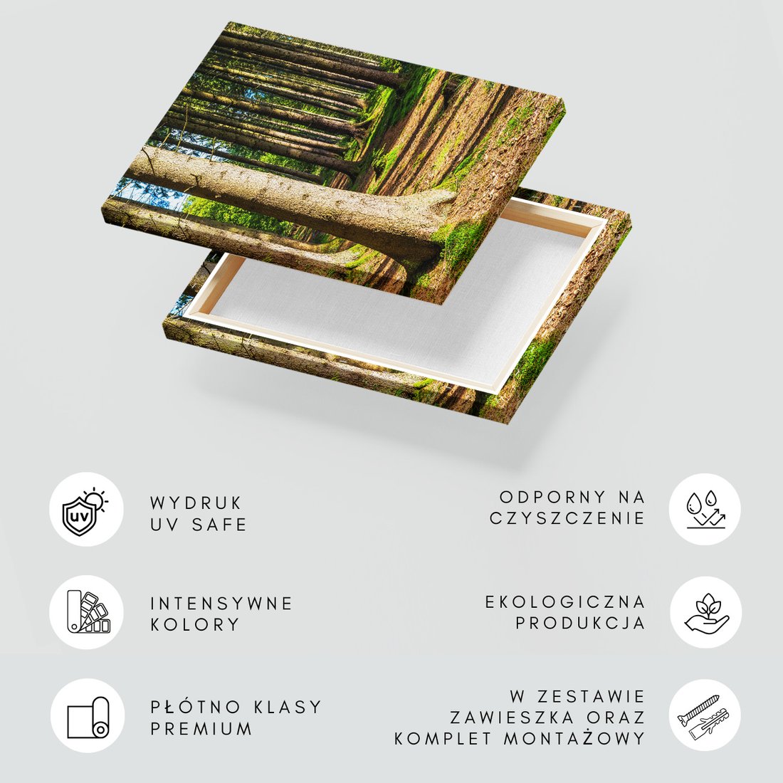 Obraz na płótnie z motywem las, drzewa, przyroda to kwintesencja estetyki i trwałości. Dzięki łatwemu montażowi i uniwersalnemu wzornictwu, czyni go idealnym wyborem zarówno do codziennego użytku, jak i na wyrafinowany prezent.
