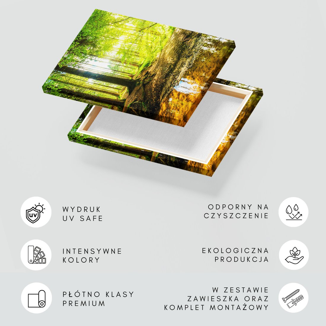 Obraz na płótnie z motywem las, drzewa, przyroda to kwintesencja estetyki i trwałości. Dzięki łatwemu montażowi i uniwersalnemu wzornictwu, czyni go idealnym wyborem zarówno do codziennego użytku, jak i na wyrafinowany prezent.