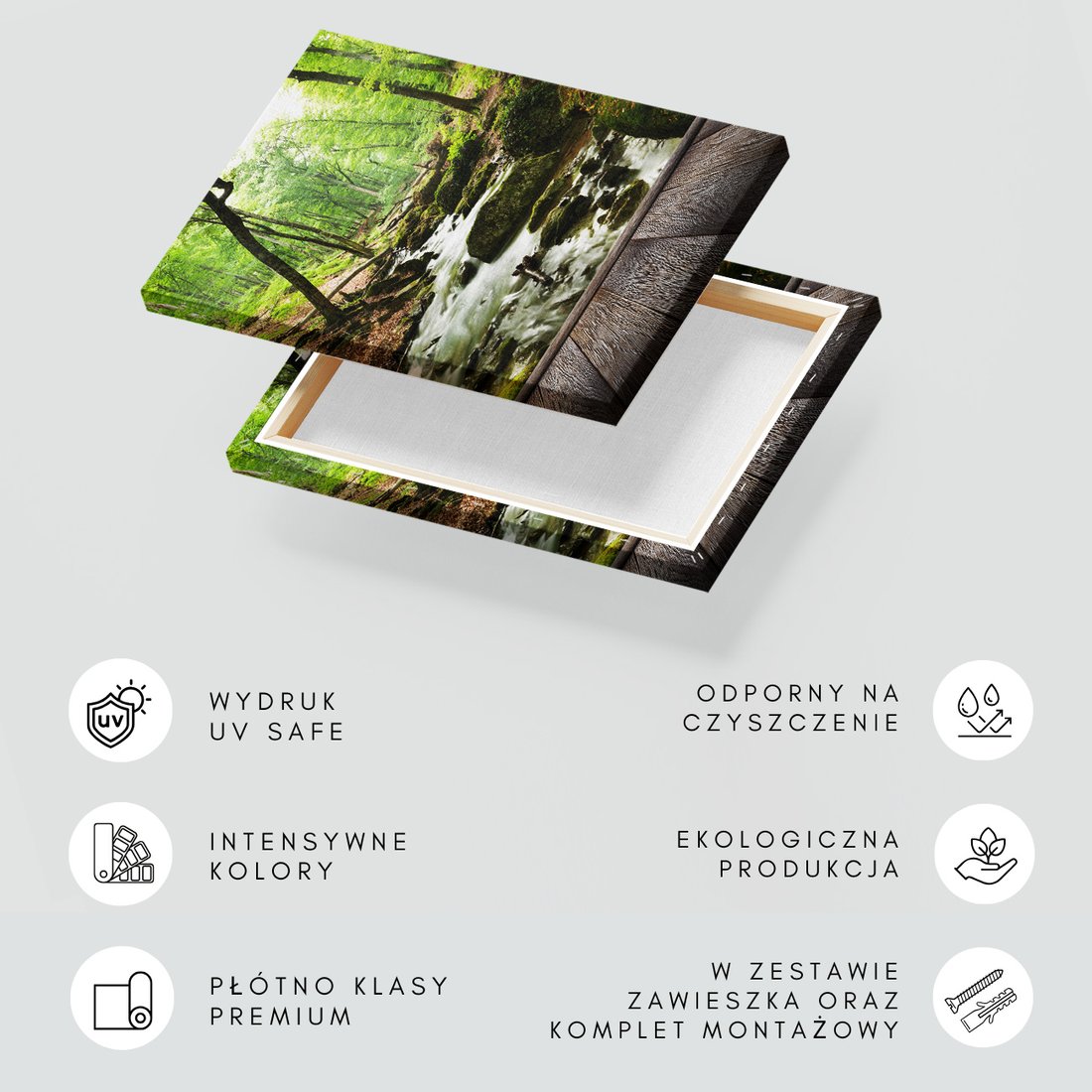 Obraz na płótnie z motywem las, strumień, drzewa to kwintesencja estetyki i trwałości. Dzięki łatwemu montażowi i uniwersalnemu wzornictwu, czyni go idealnym wyborem zarówno do codziennego użytku, jak i na wyrafinowany prezent.