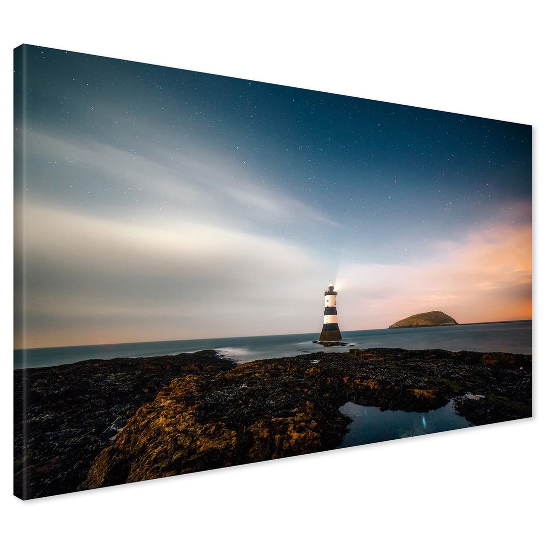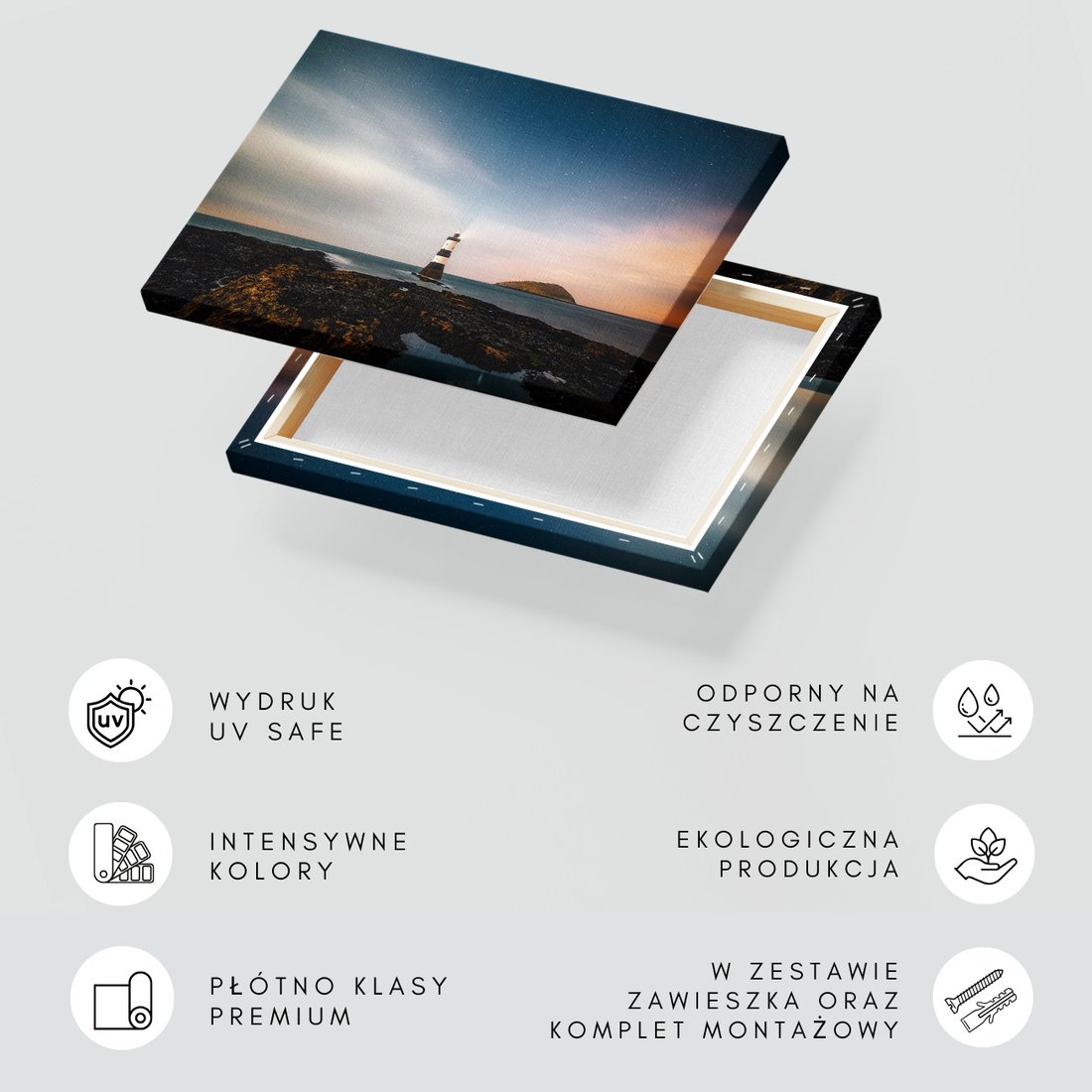Obraz na płótnie z motywem latarnia morska, morze, noc to kwintesencja estetyki i trwałości. Dzięki łatwemu montażowi i uniwersalnemu wzornictwu, czyni go idealnym wyborem zarówno do codziennego użytku, jak i na wyrafinowany prezent.