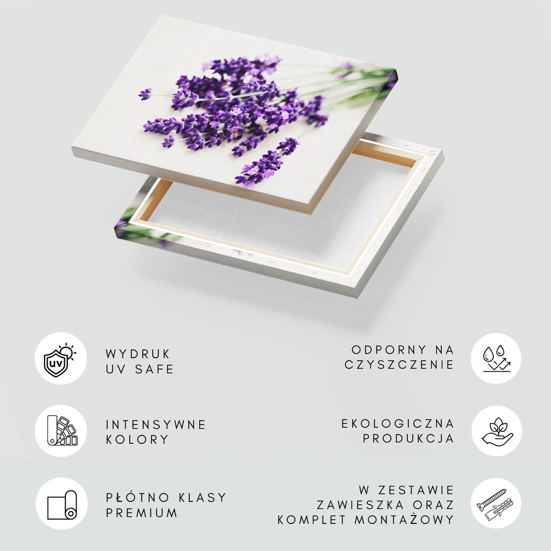Obraz na płótnie z motywem lawenda, kwiaty, fioletowy to kwintesencja estetyki i trwałości. Dzięki łatwemu montażowi i uniwersalnemu wzornictwu, czyni go idealnym wyborem zarówno do codziennego użytku, jak i na wyrafinowany prezent.