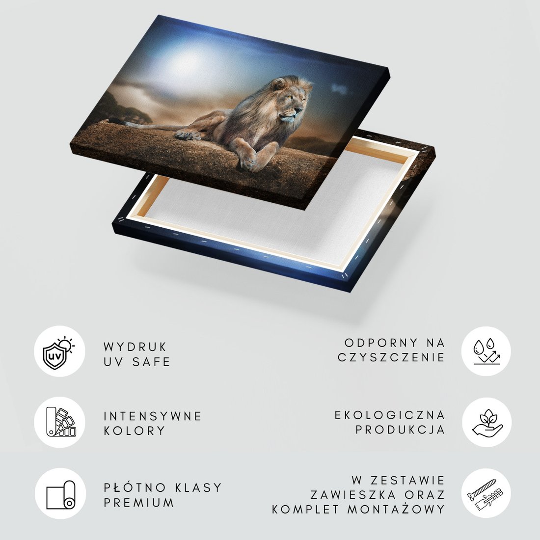 Obraz na płótnie z motywem lew, kot, natura to kwintesencja estetyki i trwałości. Dzięki łatwemu montażowi i uniwersalnemu wzornictwu, czyni go idealnym wyborem zarówno do codziennego użytku, jak i na wyrafinowany prezent.