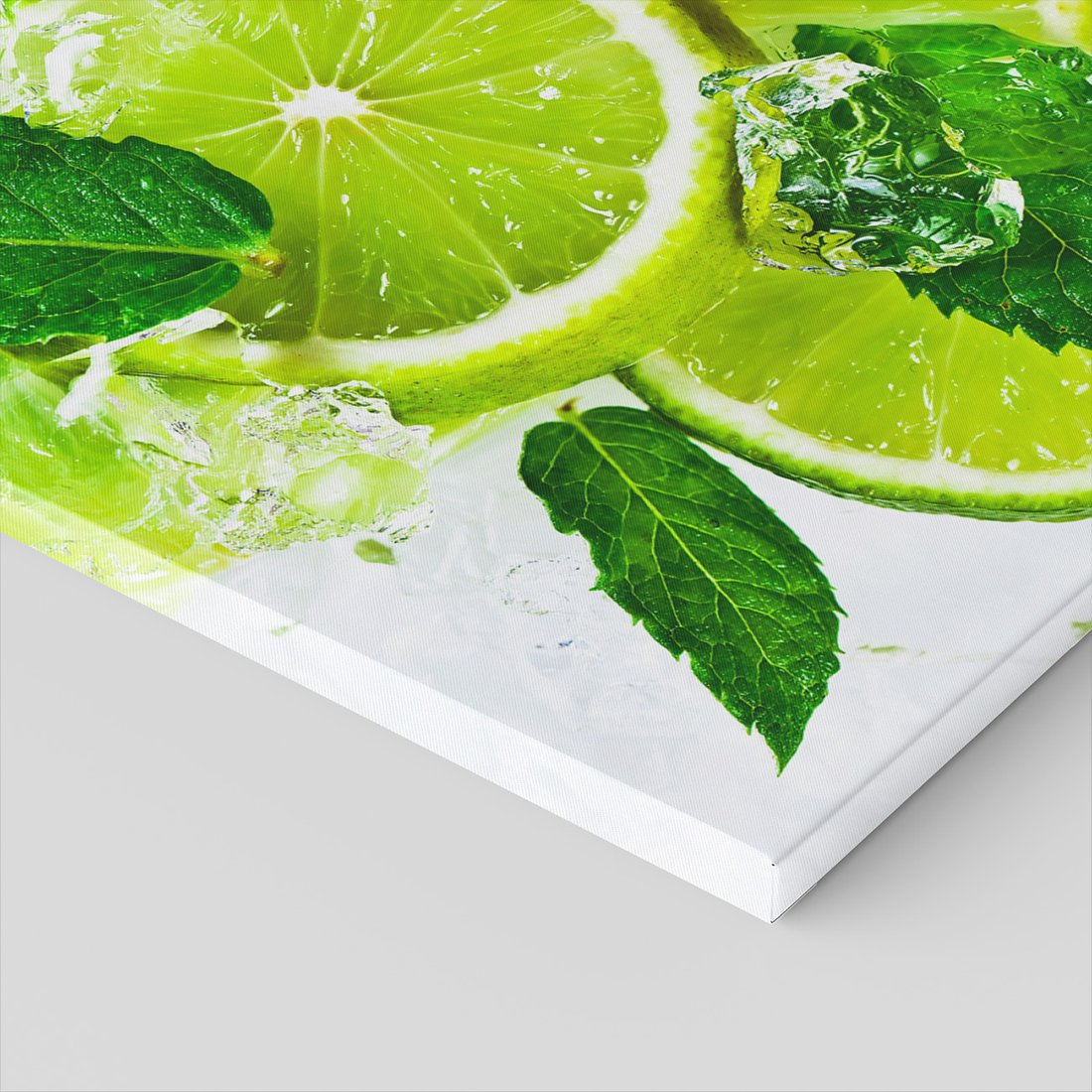 Obraz na płótnie z motywem limonka, mięta, lód to kwintesencja estetyki i trwałości. Dzięki łatwemu montażowi i uniwersalnemu wzornictwu, czyni go idealnym wyborem zarówno do codziennego użytku, jak i na wyrafinowany prezent.