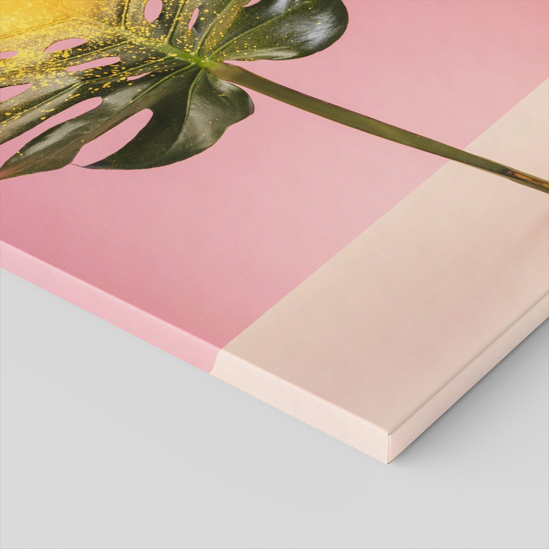 Obraz na płótnie z motywem liść, monstera, złoto to kwintesencja estetyki i trwałości. Dzięki łatwemu montażowi i uniwersalnemu wzornictwu, czyni go idealnym wyborem zarówno do codziennego użytku, jak i na wyrafinowany prezent.