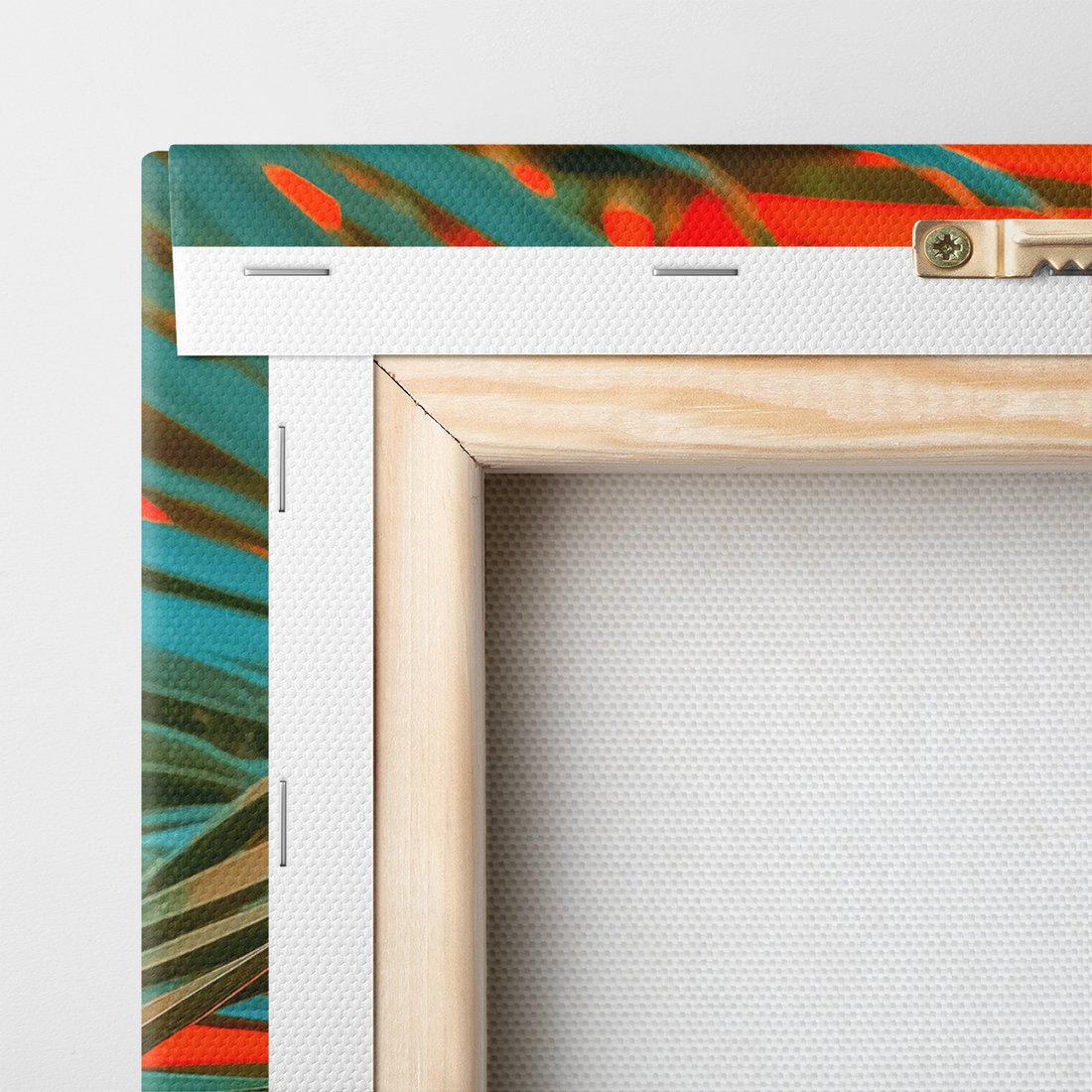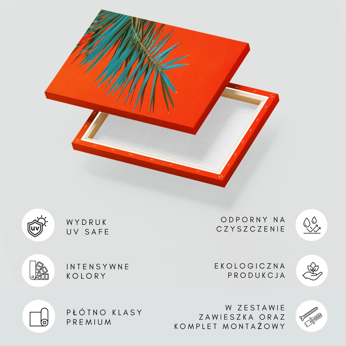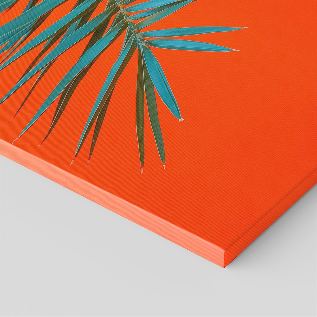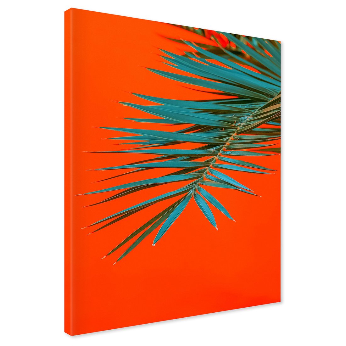 Obraz na płótnie z motywem liść palmy, pomarańczowy, abstrakcja to kwintesencja estetyki i trwałości. Dzięki łatwemu montażowi i uniwersalnemu wzornictwu, czyni go idealnym wyborem zarówno do codziennego użytku, jak i na wyrafinowany prezent.