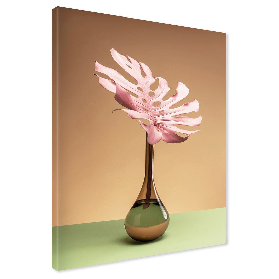 Obraz na płótnie - liść, wazon, różowy