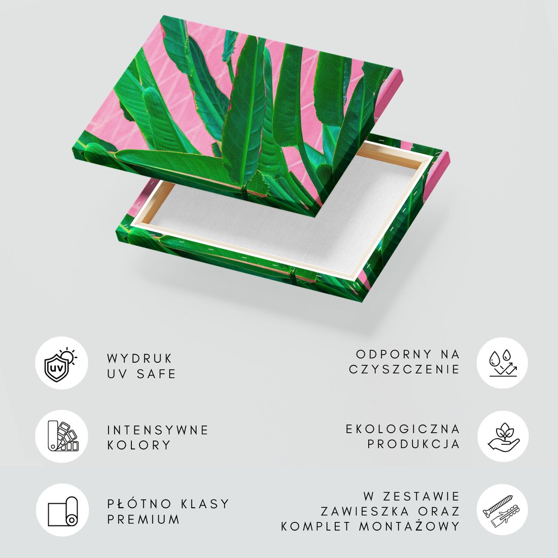 Obraz na płótnie z motywem liście, roślina, różowy to kwintesencja estetyki i trwałości. Dzięki łatwemu montażowi i uniwersalnemu wzornictwu, czyni go idealnym wyborem zarówno do codziennego użytku, jak i na wyrafinowany prezent.