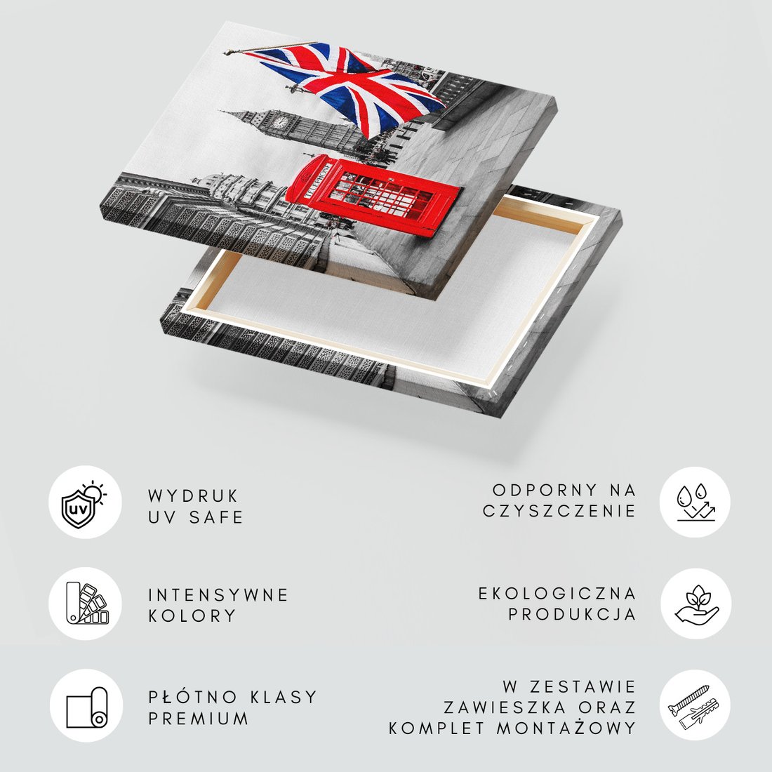 Obraz na płótnie z motywem Londyn, budka telefoniczna, Big Ben to kwintesencja estetyki i trwałości. Dzięki łatwemu montażowi i uniwersalnemu wzornictwu, czyni go idealnym wyborem zarówno do codziennego użytku, jak i na wyrafinowany prezent.