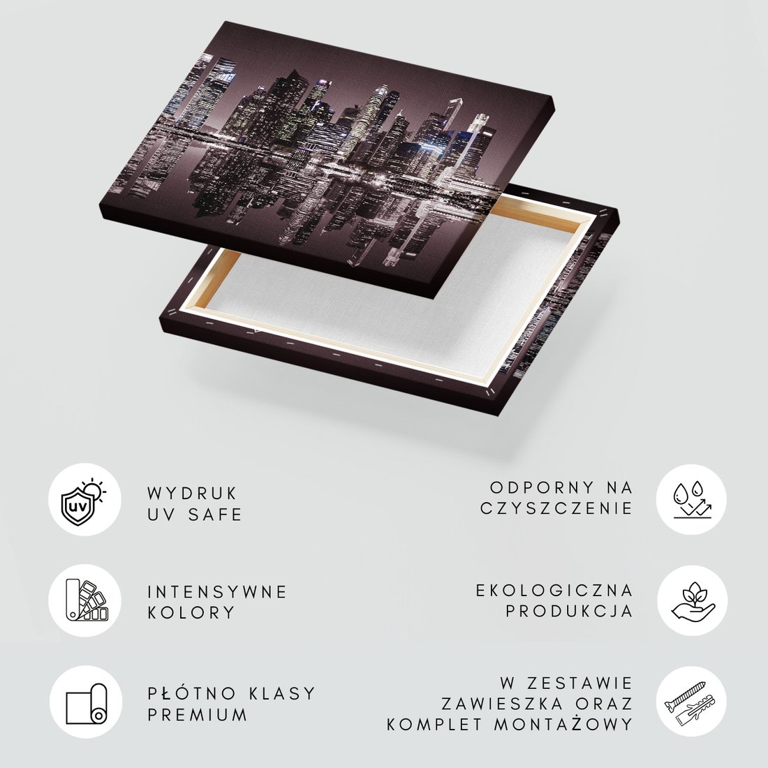 Obraz na płótnie z motywem miasto, budynki, odbicie to kwintesencja estetyki i trwałości. Dzięki łatwemu montażowi i uniwersalnemu wzornictwu, czyni go idealnym wyborem zarówno do codziennego użytku, jak i na wyrafinowany prezent.