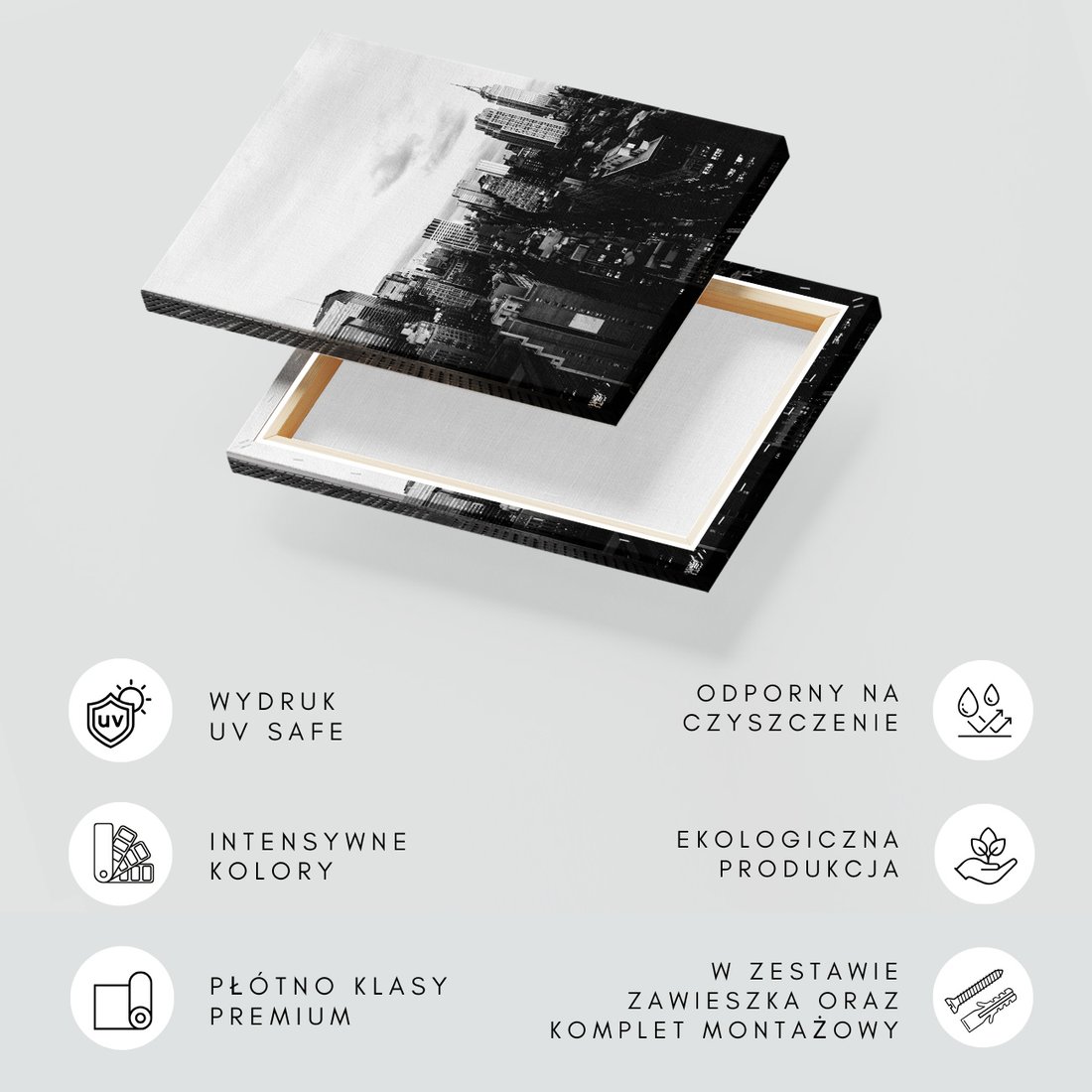 Obraz na płótnie z motywem miasto, budynki, panorama to kwintesencja estetyki i trwałości. Dzięki łatwemu montażowi i uniwersalnemu wzornictwu, czyni go idealnym wyborem zarówno do codziennego użytku, jak i na wyrafinowany prezent.