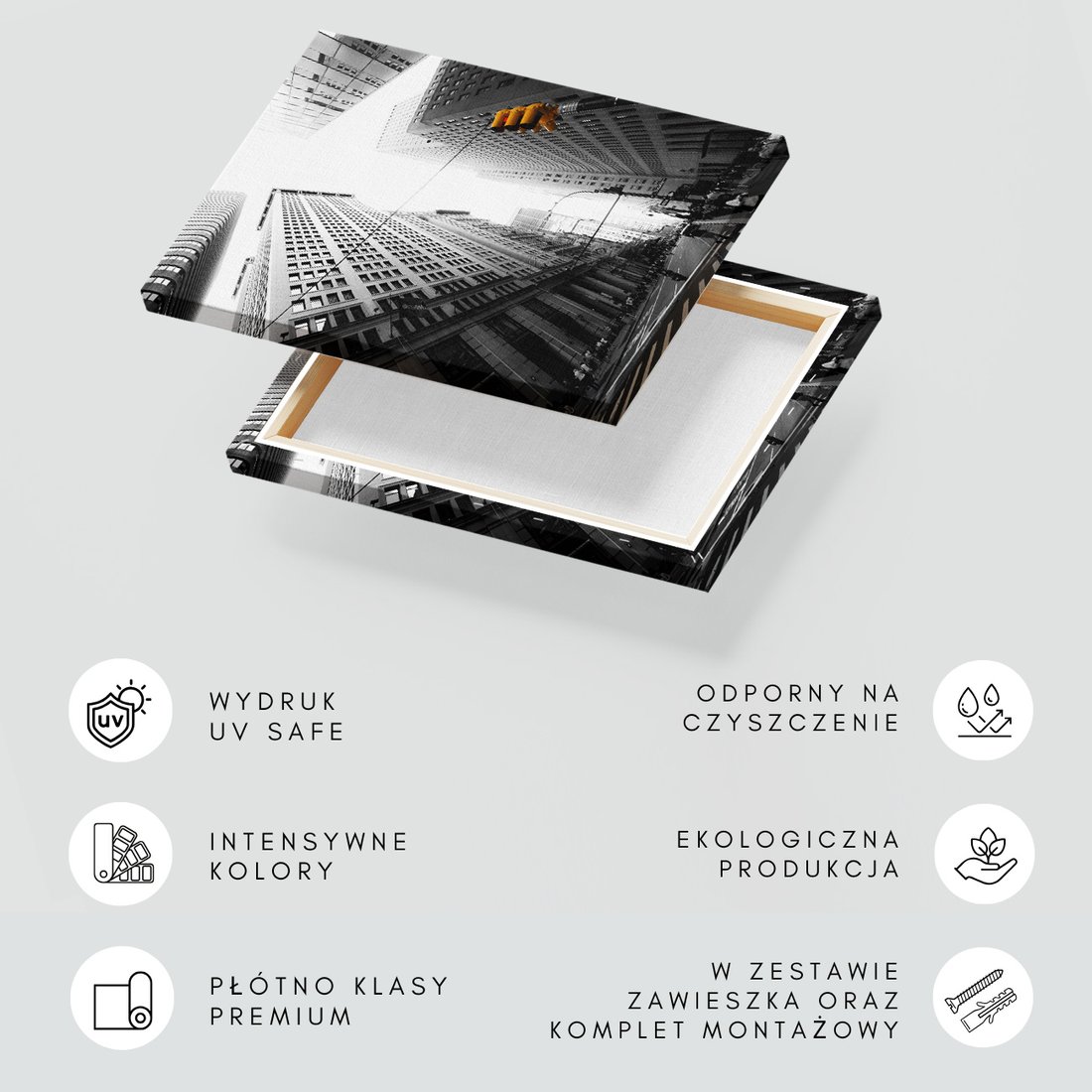 Obraz na płótnie z motywem miasto, budynki, ulica to kwintesencja estetyki i trwałości. Dzięki łatwemu montażowi i uniwersalnemu wzornictwu, czyni go idealnym wyborem zarówno do codziennego użytku, jak i na wyrafinowany prezent.