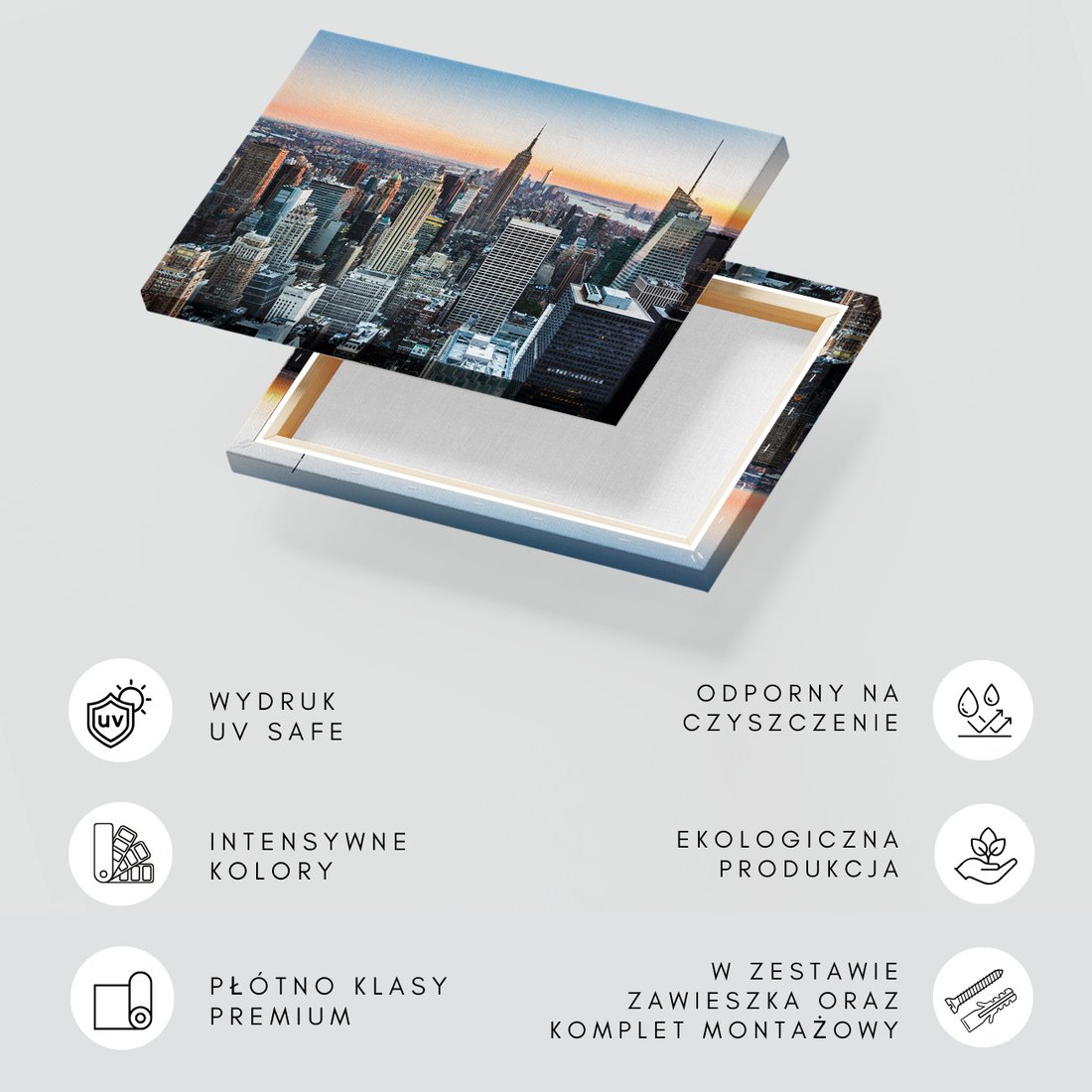 Obraz na płótnie z motywem miasto, drapacze chmur, panorama to kwintesencja estetyki i trwałości. Dzięki łatwemu montażowi i uniwersalnemu wzornictwu, czyni go idealnym wyborem zarówno do codziennego użytku, jak i na wyrafinowany prezent.
