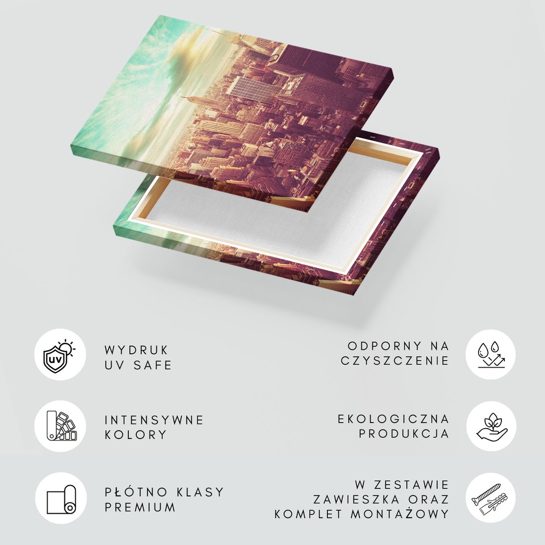 Obraz na płótnie z motywem miasto, drapacze chmur, panorama to kwintesencja estetyki i trwałości. Dzięki łatwemu montażowi i uniwersalnemu wzornictwu, czyni go idealnym wyborem zarówno do codziennego użytku, jak i na wyrafinowany prezent.