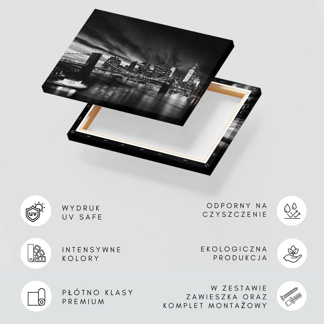 Obraz na płótnie z motywem miasto, most, noc to kwintesencja estetyki i trwałości. Dzięki łatwemu montażowi i uniwersalnemu wzornictwu, czyni go idealnym wyborem zarówno do codziennego użytku, jak i na wyrafinowany prezent.