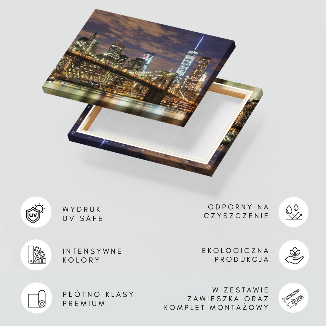 Obraz na płótnie z motywem miasto, most, noc to kwintesencja estetyki i trwałości. Dzięki łatwemu montażowi i uniwersalnemu wzornictwu, czyni go idealnym wyborem zarówno do codziennego użytku, jak i na wyrafinowany prezent.