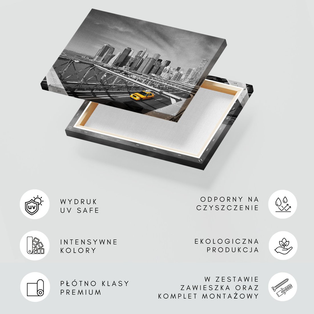 Obraz na płótnie z motywem miasto, most, taksówka to kwintesencja estetyki i trwałości. Dzięki łatwemu montażowi i uniwersalnemu wzornictwu, czyni go idealnym wyborem zarówno do codziennego użytku, jak i na wyrafinowany prezent.
