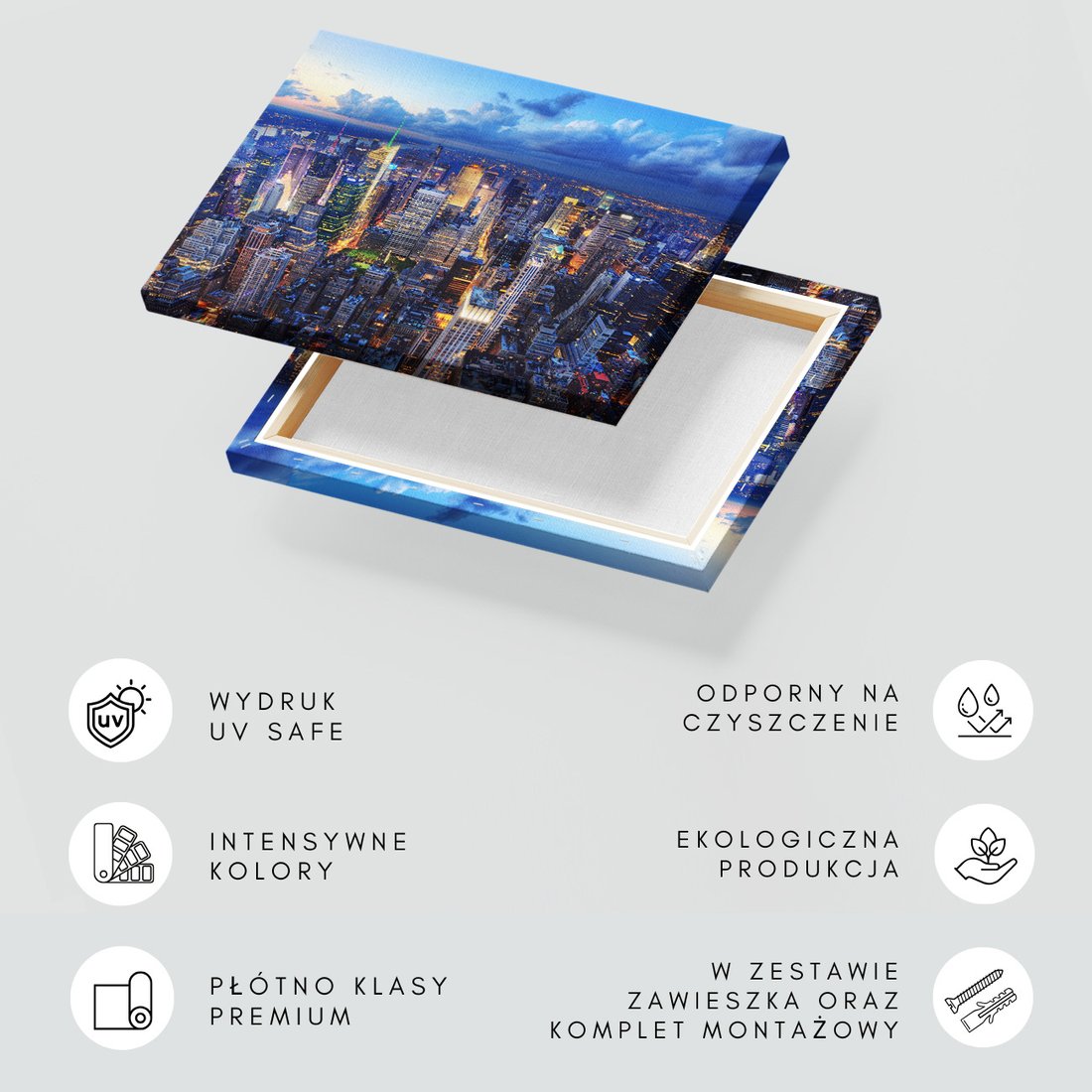 Obraz na płótnie z motywem miasto, noc, budynki to kwintesencja estetyki i trwałości. Dzięki łatwemu montażowi i uniwersalnemu wzornictwu, czyni go idealnym wyborem zarówno do codziennego użytku, jak i na wyrafinowany prezent.