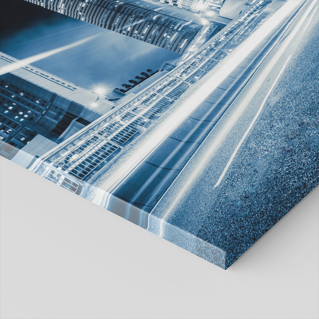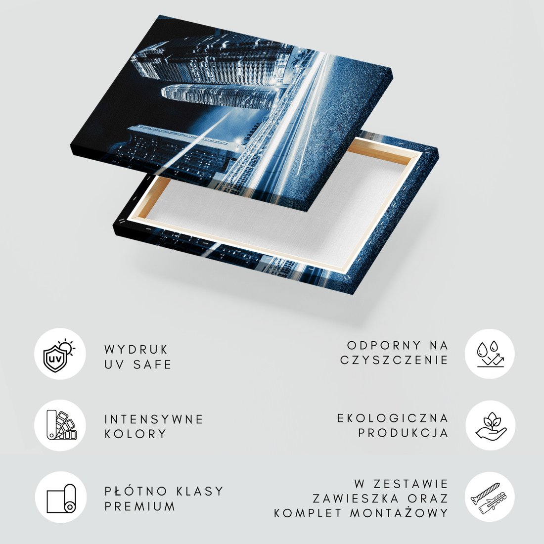 Obraz na płótnie z motywem miasto, noc, budynki to kwintesencja estetyki i trwałości. Dzięki łatwemu montażowi i uniwersalnemu wzornictwu, czyni go idealnym wyborem zarówno do codziennego użytku, jak i na wyrafinowany prezent.