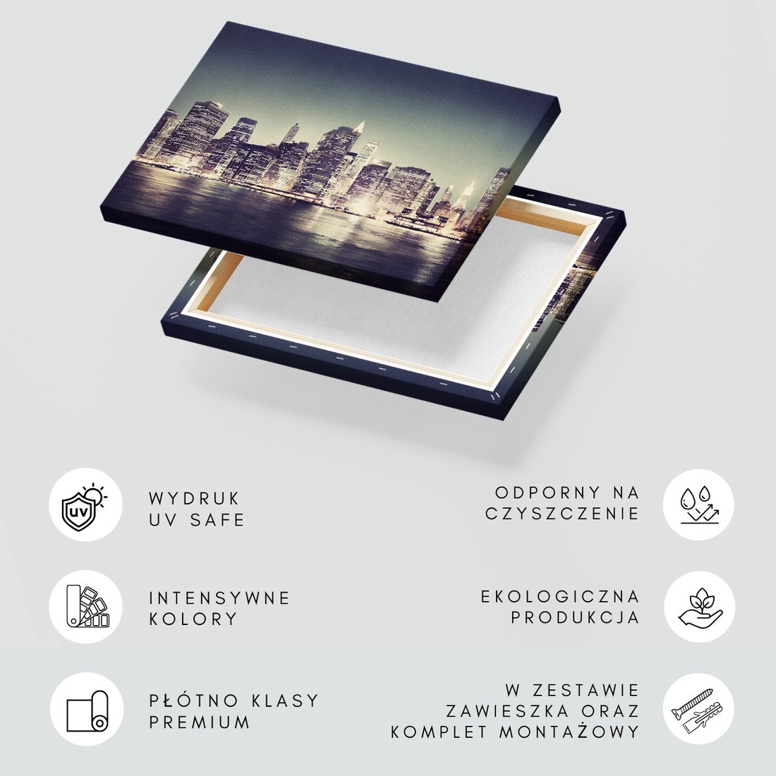 Obraz na płótnie z motywem miasto, noc, woda to kwintesencja estetyki i trwałości. Dzięki łatwemu montażowi i uniwersalnemu wzornictwu, czyni go idealnym wyborem zarówno do codziennego użytku, jak i na wyrafinowany prezent.