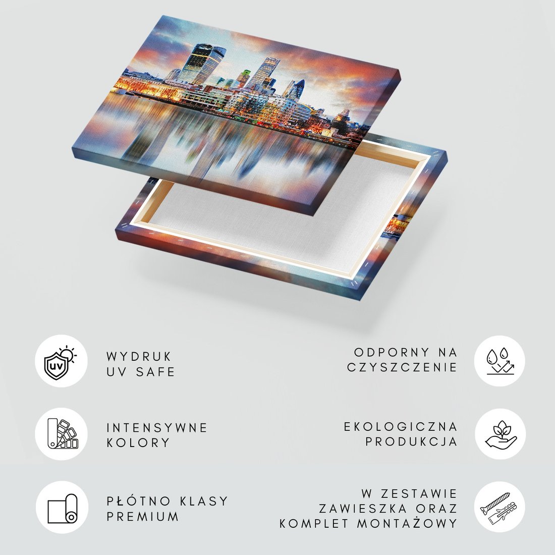 Obraz na płótnie z motywem miasto, panorama, rzeka to kwintesencja estetyki i trwałości. Dzięki łatwemu montażowi i uniwersalnemu wzornictwu, czyni go idealnym wyborem zarówno do codziennego użytku, jak i na wyrafinowany prezent.