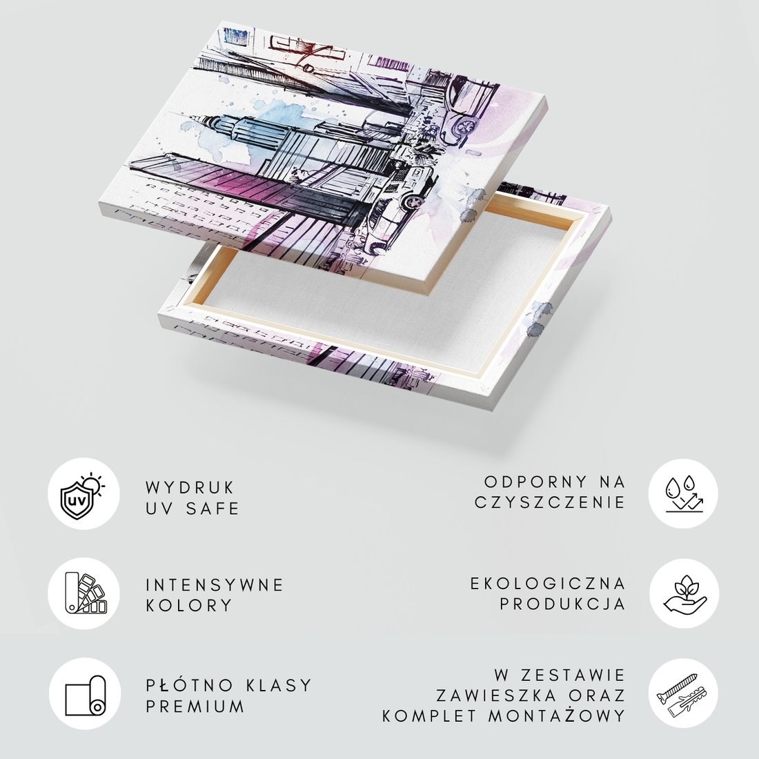 Obraz na płótnie z motywem miasto, ulica, samochody to kwintesencja estetyki i trwałości. Dzięki łatwemu montażowi i uniwersalnemu wzornictwu, czyni go idealnym wyborem zarówno do codziennego użytku, jak i na wyrafinowany prezent.
