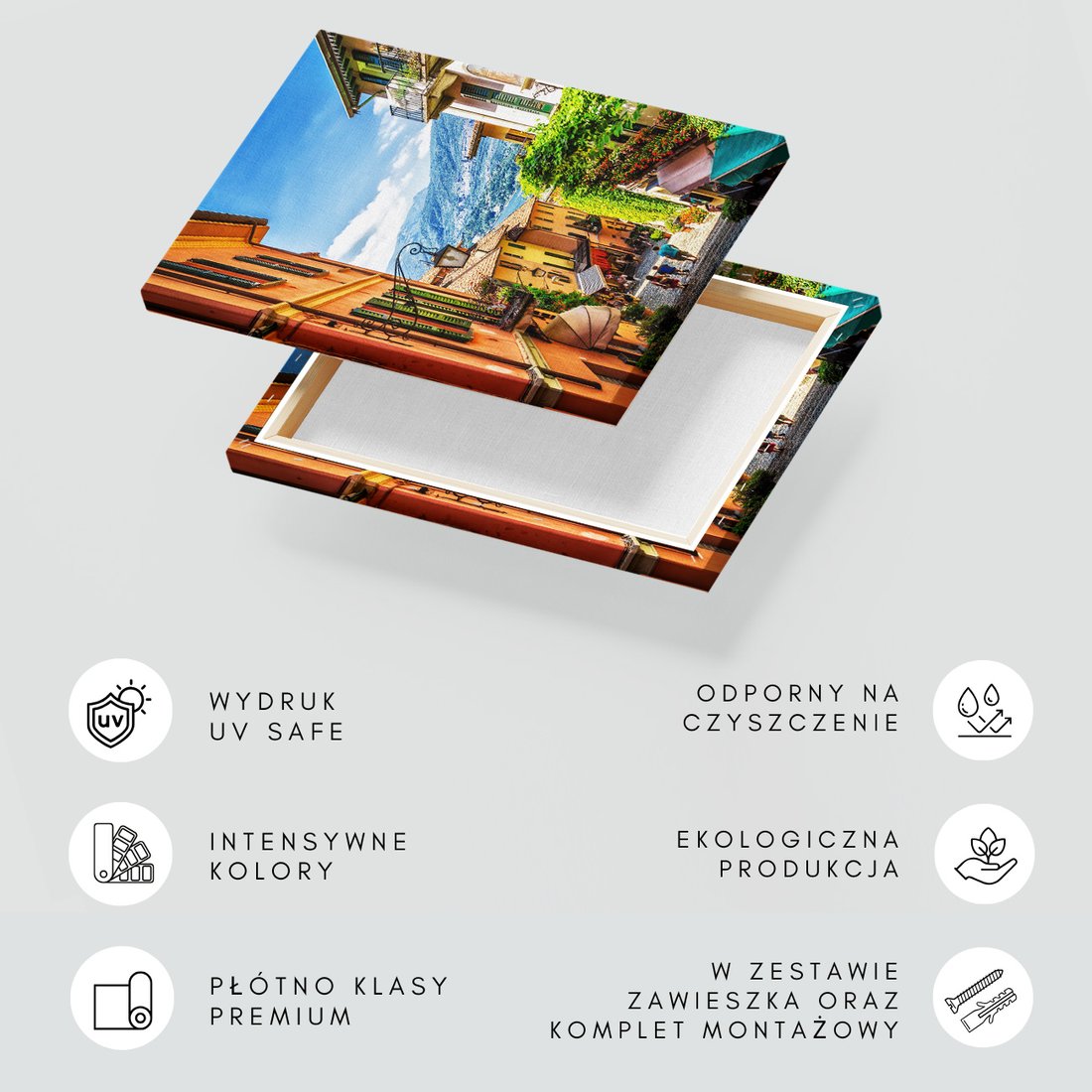 Obraz na płótnie z motywem miasto, uliczka, budynki to kwintesencja estetyki i trwałości. Dzięki łatwemu montażowi i uniwersalnemu wzornictwu, czyni go idealnym wyborem zarówno do codziennego użytku, jak i na wyrafinowany prezent.