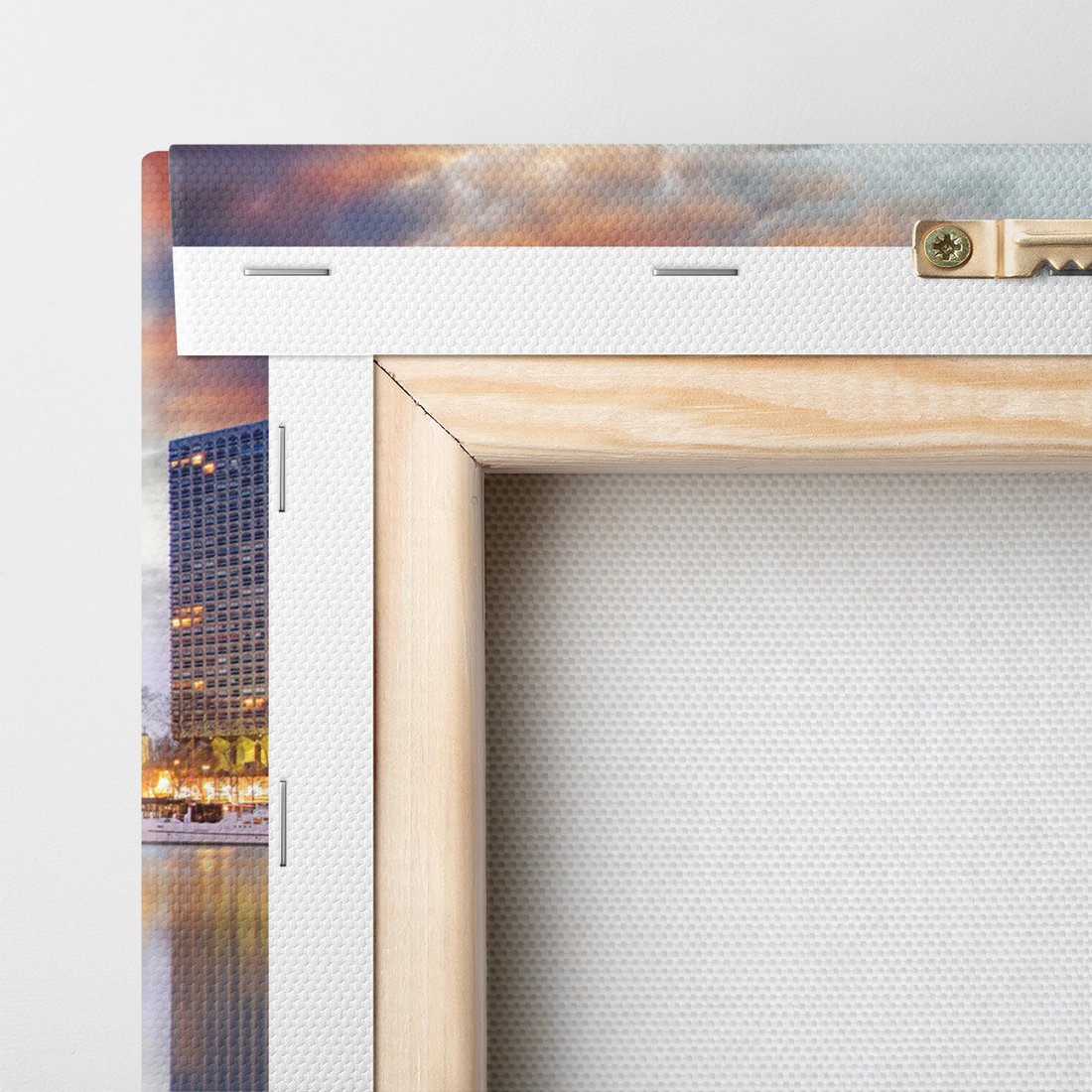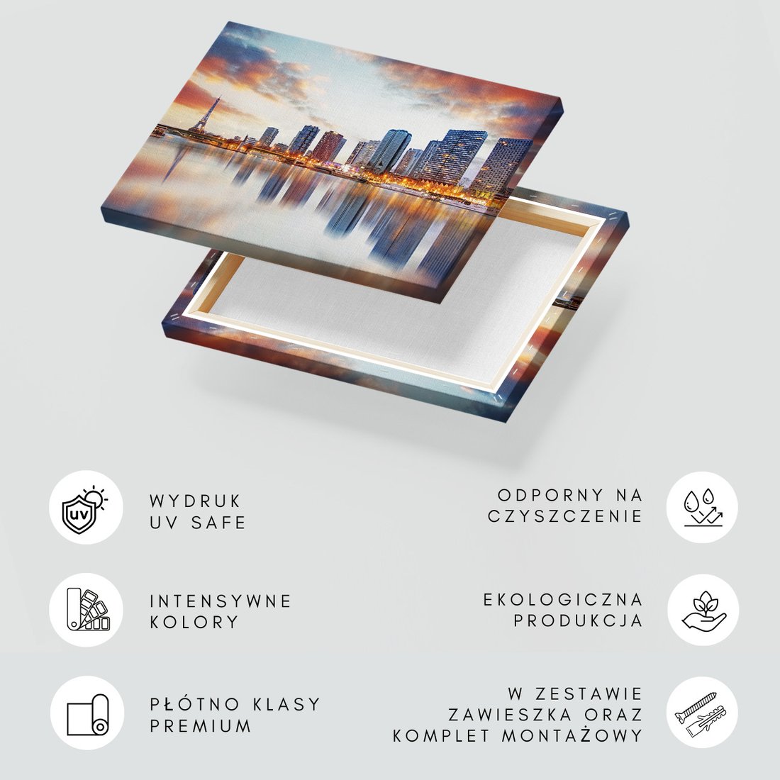 Obraz na płótnie z motywem miasto, wieża, woda to kwintesencja estetyki i trwałości. Dzięki łatwemu montażowi i uniwersalnemu wzornictwu, czyni go idealnym wyborem zarówno do codziennego użytku, jak i na wyrafinowany prezent.