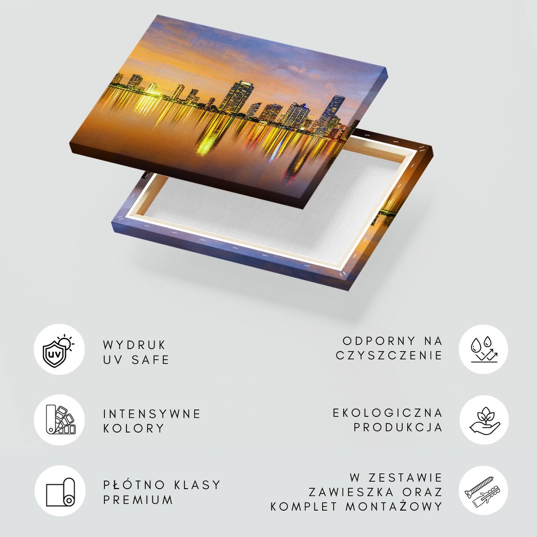 Obraz na płótnie z motywem miasto, woda, budynki to kwintesencja estetyki i trwałości. Dzięki łatwemu montażowi i uniwersalnemu wzornictwu, czyni go idealnym wyborem zarówno do codziennego użytku, jak i na wyrafinowany prezent.