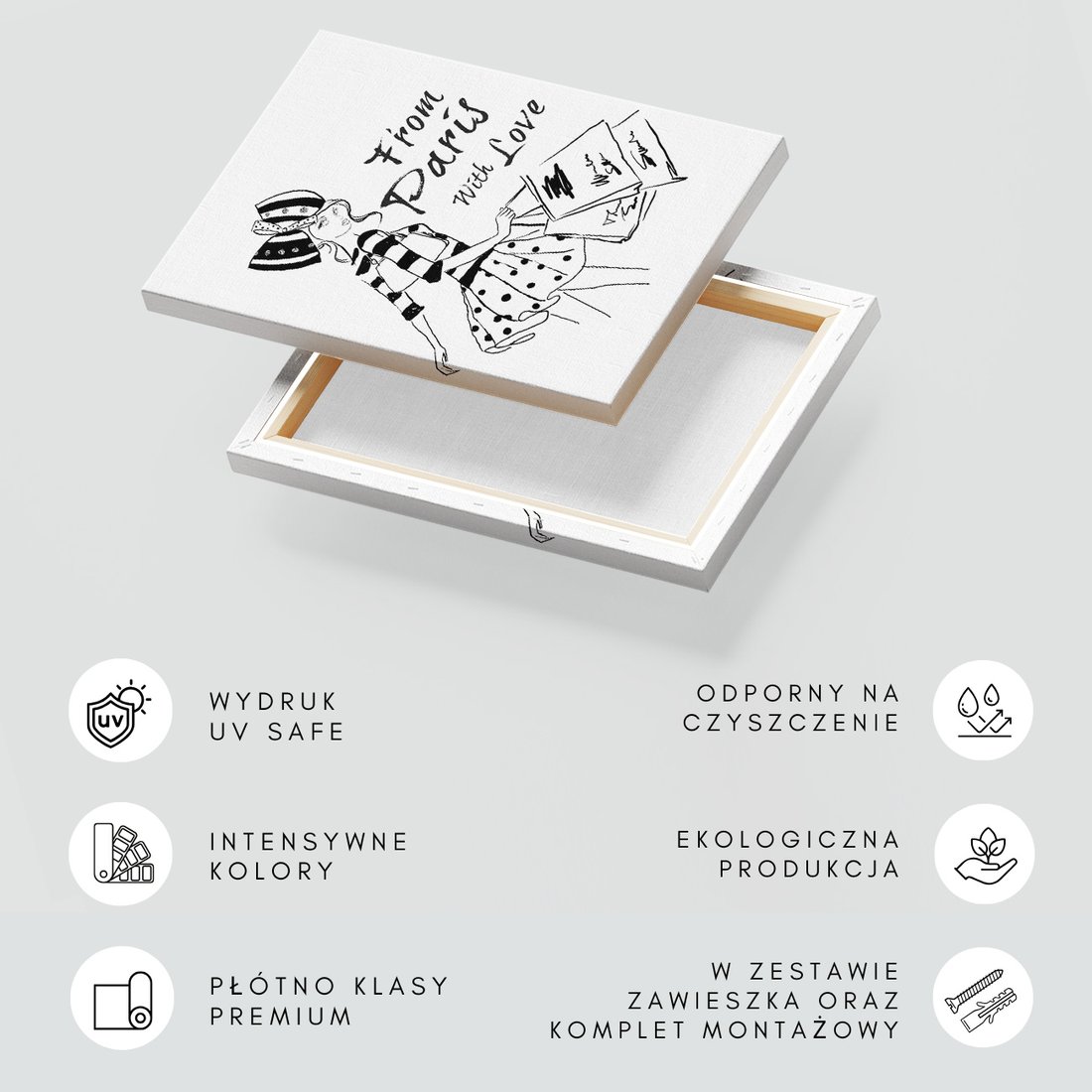 Obraz na płótnie z motywem moda, Paryż, kobieta to kwintesencja estetyki i trwałości. Dzięki łatwemu montażowi i uniwersalnemu wzornictwu, czyni go idealnym wyborem zarówno do codziennego użytku, jak i na wyrafinowany prezent.