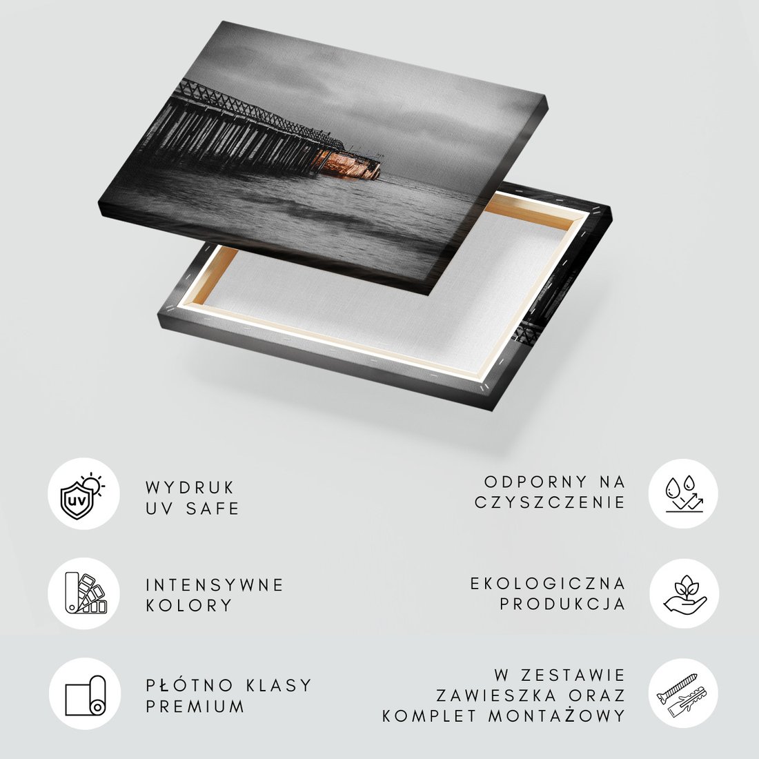 Obraz na płótnie z motywem morze, molo, woda to kwintesencja estetyki i trwałości. Dzięki łatwemu montażowi i uniwersalnemu wzornictwu, czyni go idealnym wyborem zarówno do codziennego użytku, jak i na wyrafinowany prezent.