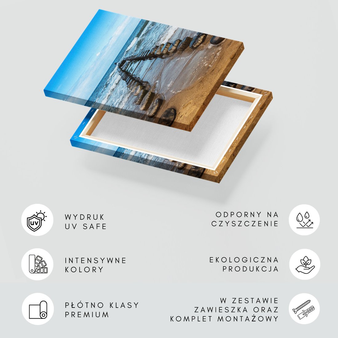 Obraz na płótnie z motywem morze, plaża, drewno to kwintesencja estetyki i trwałości. Dzięki łatwemu montażowi i uniwersalnemu wzornictwu, czyni go idealnym wyborem zarówno do codziennego użytku, jak i na wyrafinowany prezent.