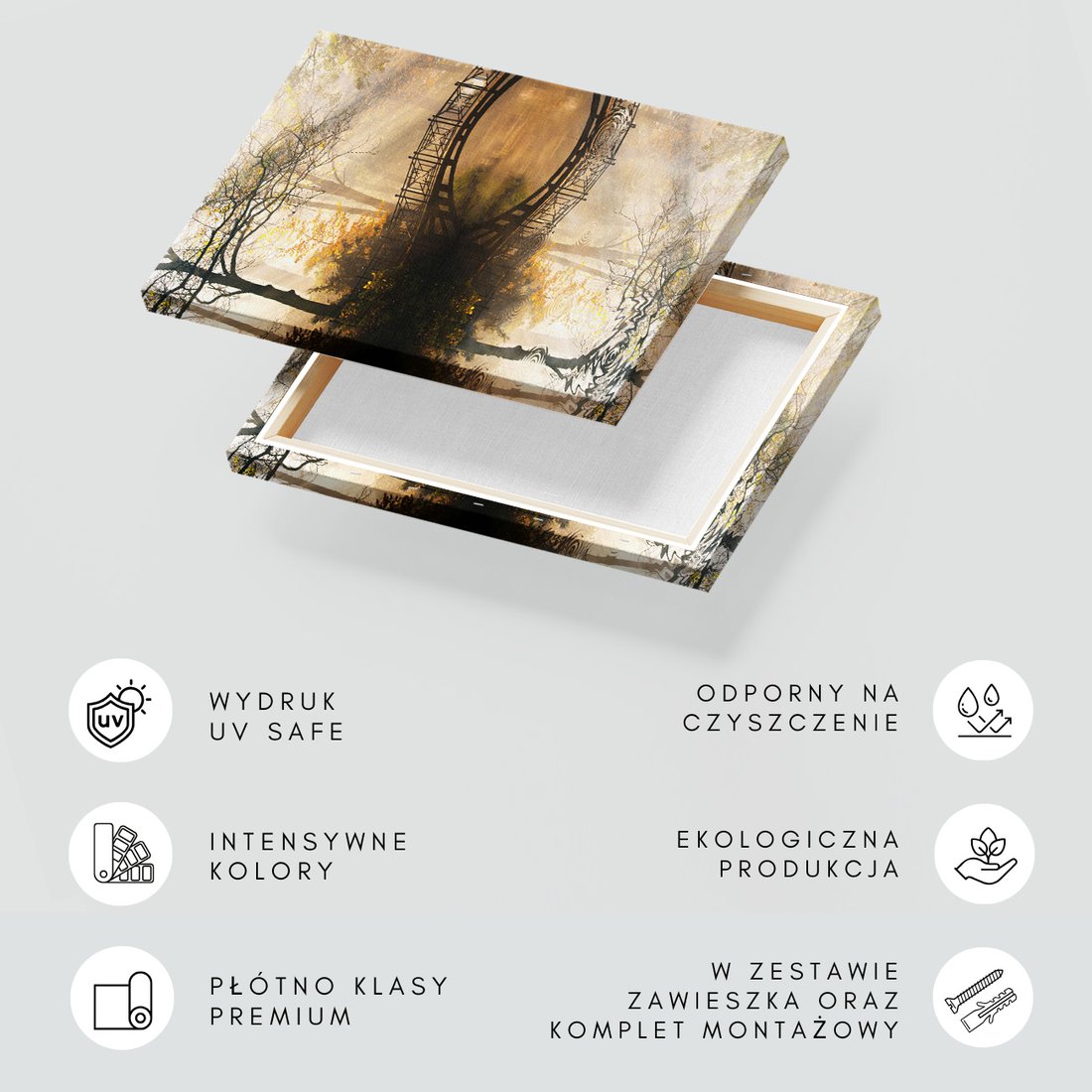 Obraz na płótnie z motywem most, drzewa, woda to kwintesencja estetyki i trwałości. Dzięki łatwemu montażowi i uniwersalnemu wzornictwu, czyni go idealnym wyborem zarówno do codziennego użytku, jak i na wyrafinowany prezent.