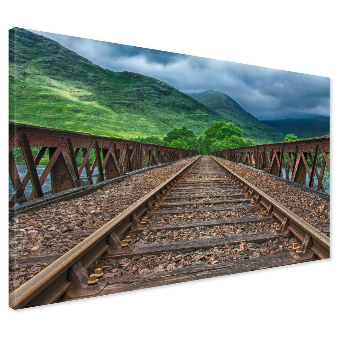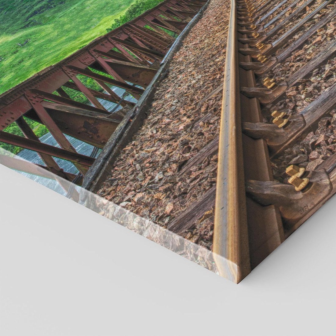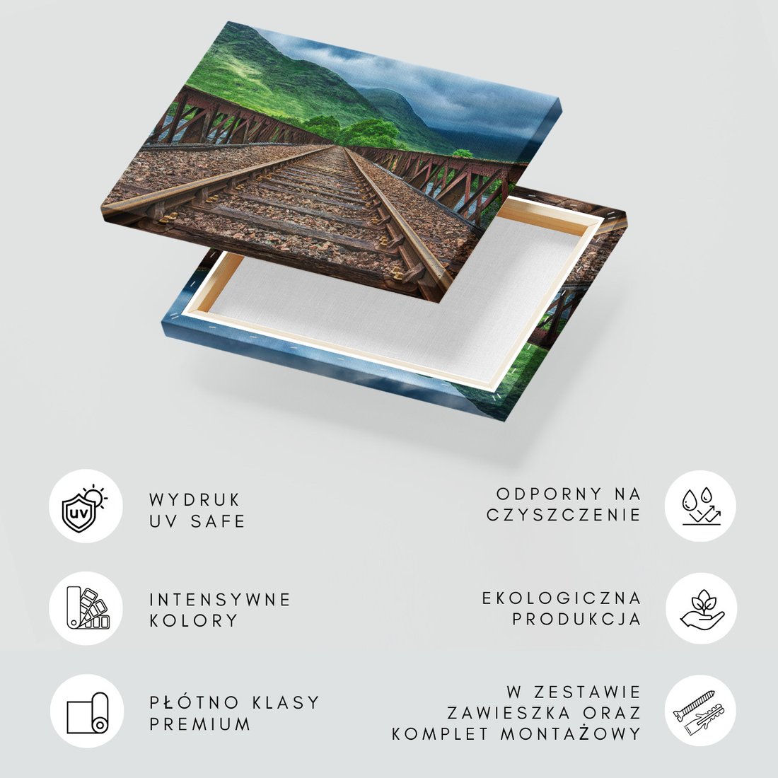 Obraz na płótnie z motywem most, góry, tory to kwintesencja estetyki i trwałości. Dzięki łatwemu montażowi i uniwersalnemu wzornictwu, czyni go idealnym wyborem zarówno do codziennego użytku, jak i na wyrafinowany prezent.