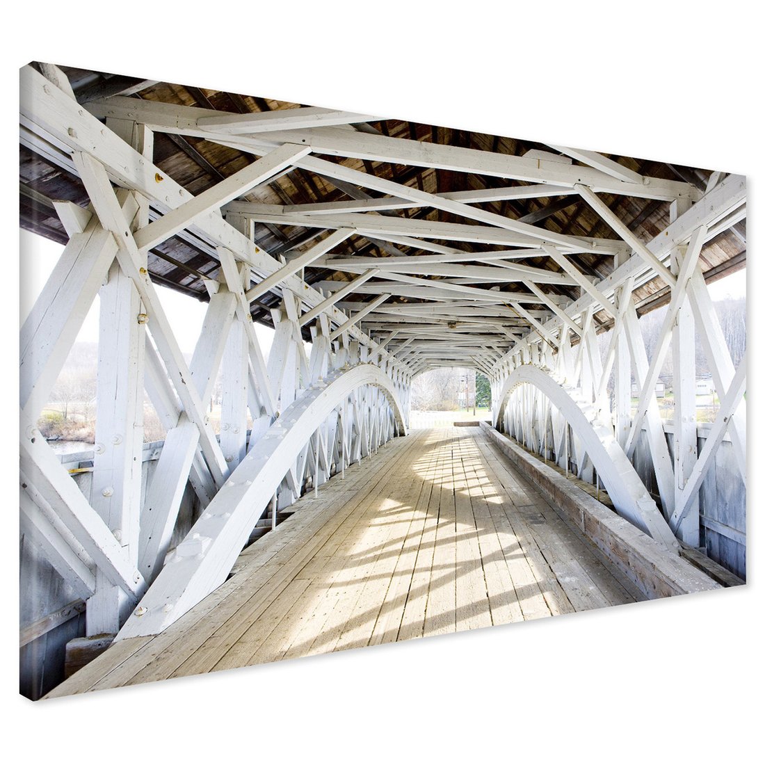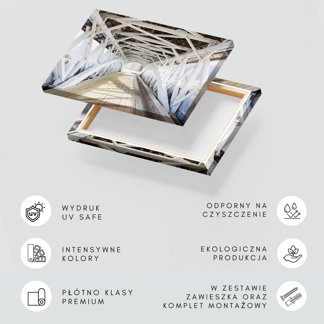 Obraz na płótnie z motywem most kryty, drewno, architektura to kwintesencja estetyki i trwałości. Dzięki łatwemu montażowi i uniwersalnemu wzornictwu, czyni go idealnym wyborem zarówno do codziennego użytku, jak i na wyrafinowany prezent.